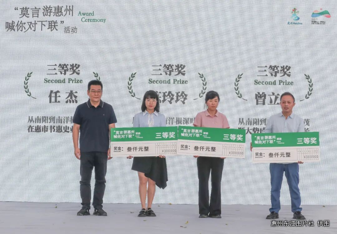 值得一提的是,本次活动是惠州精心培育文化品牌的开篇之作。今年起,古榕文学村将连续三年举办全国征联接龙活动,以上届一等奖获得者拟上联,全国参与者投稿下联,主办方评选出最优下联,获奖者成为下届出联人并将得到主办方的神秘礼物。“莫言游惠州,喊你对下联”
